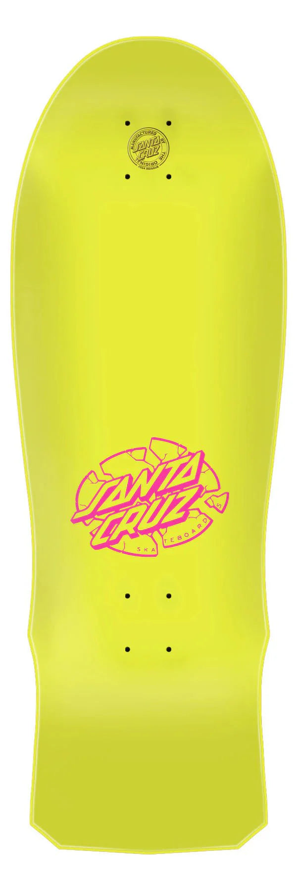 Santa Cruz Skateboards Claus Grabke Exploding Clock Reissue deck featuring newly remastered spot matte neon graphics on full dip neon green deck with laser etched 2024 reissue decktop logo.